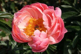 Paeonia 'Coral Charm' on upea pionihybridi, jonka suuret, maljamaiset puolikerrotut kukat loistavat korallinpunaisina ja vaalenevat iän myötä persikkaan ja kermanvalkoiseen. Kukkii aikaisin kesäkuussa ja kasvaa suorilla, vahvoilla varsilla, jotka harvoin tarvitsevat tukea. Erinomainen myös leikkokukkana pitkän keston ansiosta. Viihtyy auringossa tai puolivarjossa, ravinteikkaassa ja hyvin ojitetussa maassa. Luotettava ja näyttävä pioneista aikaisimpia kukkijoita.