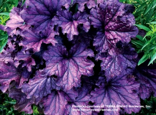 Heuchera 'Forever™ Purple®' on katseenvangitsija puutarhassa – sen kirkkaan punavioletit, kiiltävät lehdet säilyttävät värinsä hyvin.