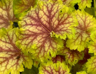 Heuchera 'Splashberry' on pirteä ja näyttävä lajike, jonka vaaleanpunaisen ja limenvihreän sävyisissä lehdissä on roiskeita vadelmanpunaisella. Se tuo väriä ja eloa varjoisiin paikkoihin, ruukkuihin tai kukkapenkkiin.