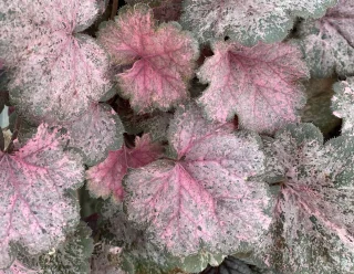 Heuchera 'Pinky Panky®' on näyttävä lajike, jonka lehdissä sekoittuvat hopeanharmaa, vihreä ja syvä purppura – keskellä usein kauniita vaaleanpunaisia sävyjä. Se luo upean kontrastin varjoisissa istutuksissa ja säilyttää värinsä koko kauden.
