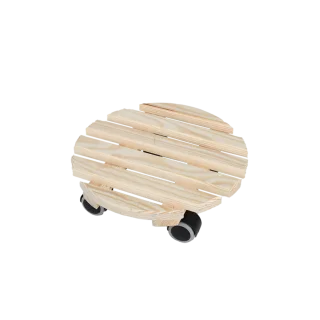 Puinen ruukunalusta pyörillä, sisäkäyttöön.