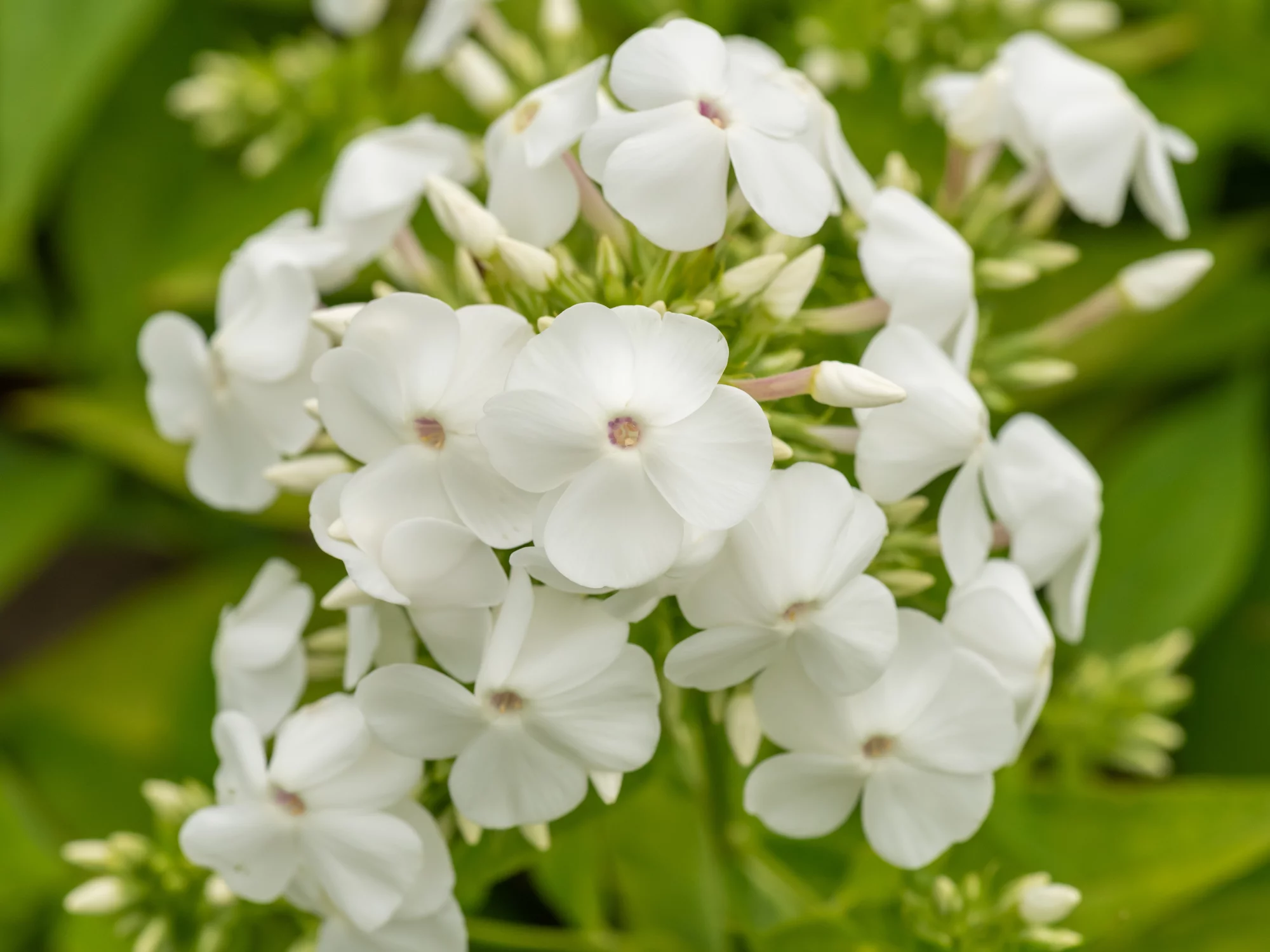 Phlox paniculata 'David' är en prisbelönt höstflox med stora, vita blommor som sprider en härlig söt doft. Blommar rikligt från juli till september och är mycket omtyckt av fjärilar och bin. Sorten är känd för sin goda mjöldaggsresistens och robusta växtsätt, vilket gör den till ett säkert val i både traditionella och moderna rabatter. Trivs bäst i sol till halvskugga och väldränerad, näringsrik och lätt fuktig jord. En riktig klassiker i perennrabatten.