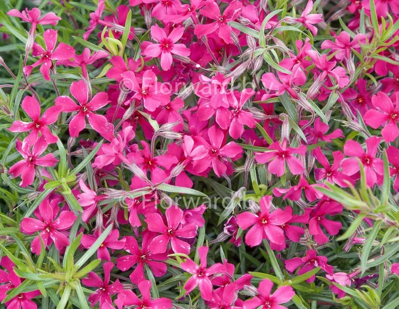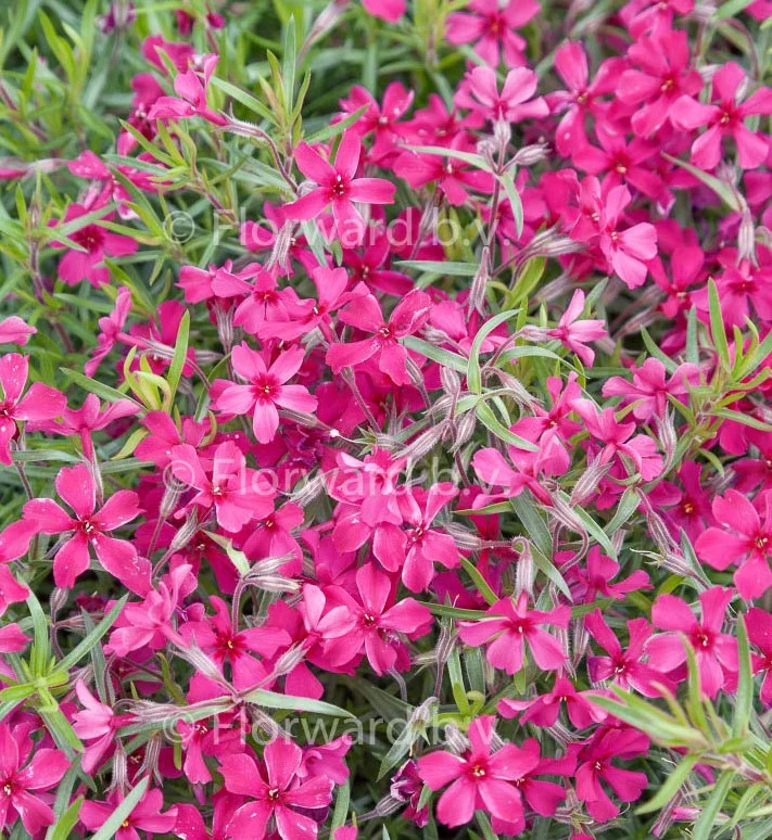 Phlox subulata 'Scarlet Flame' är en låg, mattbildande vårflox som blommar rikligt i april–maj med intensivt rödrosa, nästan lysande blommor. Blomningen täcker det barrliknande vintergröna bladverket och skapar en stark färgeffekt tidigt på våren. Passar utmärkt i stenpartier, slänter, som kantväxt eller över murar. Trivs bäst i full sol och väldränerad, sandig eller grusig jord. Lättskött, torktålig och idealisk för att skapa livfulla färgfält.
