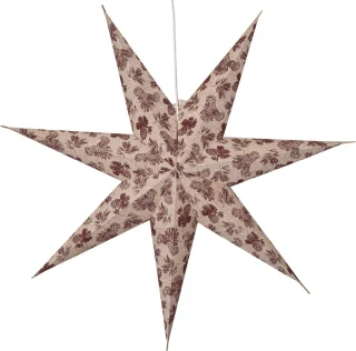 Pappersstjärna med kottar och barr i en vacker beige och röd färg.
