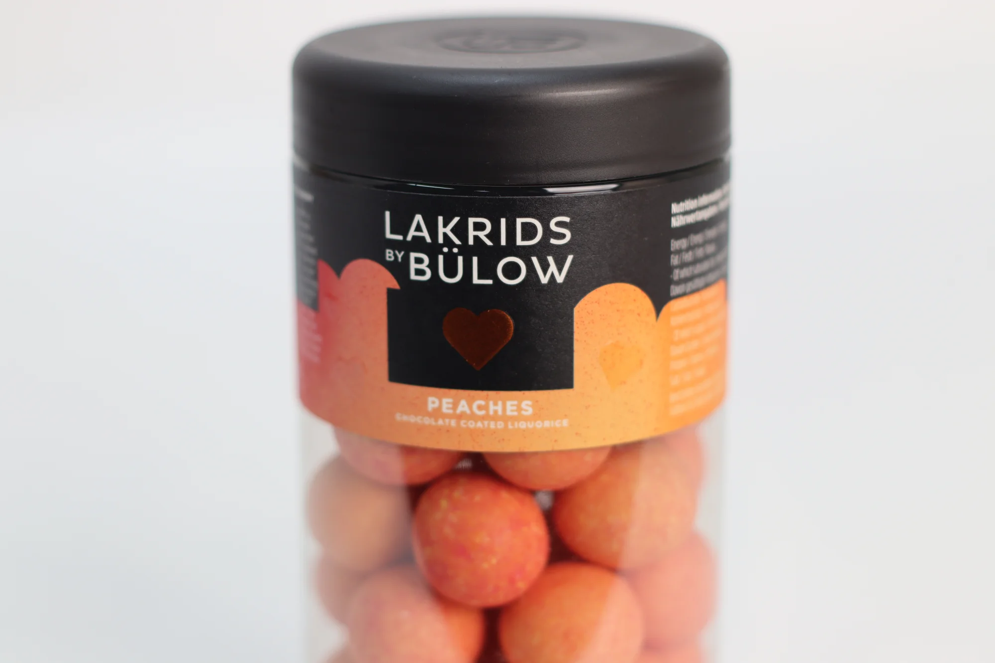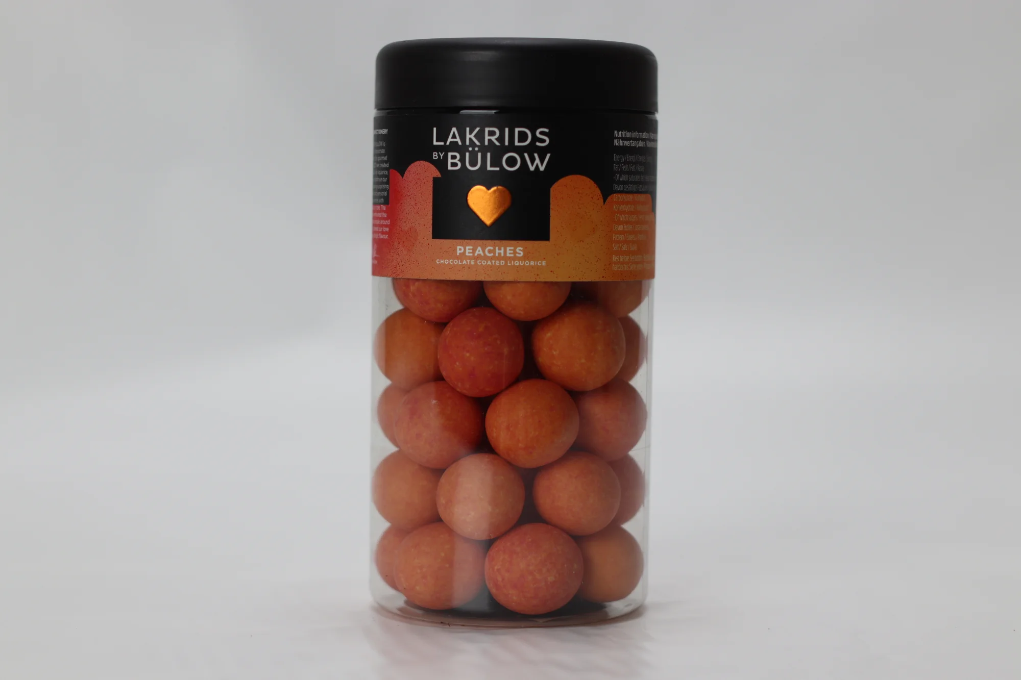 Ingredienser: 52% vit choklad (minst 26% kakaosmör) (EU) (socker, kakaosmör, helmjölkspulver, emulgeringsmedel (sojalecitin, lecitin), naturlig arom), socker, rismjöl, invertsocker, melass, glukossirap, 1% persika (EU) (frystorkad) passionsfrukt (frystorkad), 1% rå lakrits (inte- EU), ytbehandlingsmedel (arabisk gummi, carnaubavax, shellak) rapsolja, salt, salmiak, färgämnen (kalciumkarbonat, betakaroten, rödbeta) naturliga aromer, stabilisering: arabisk gummi.