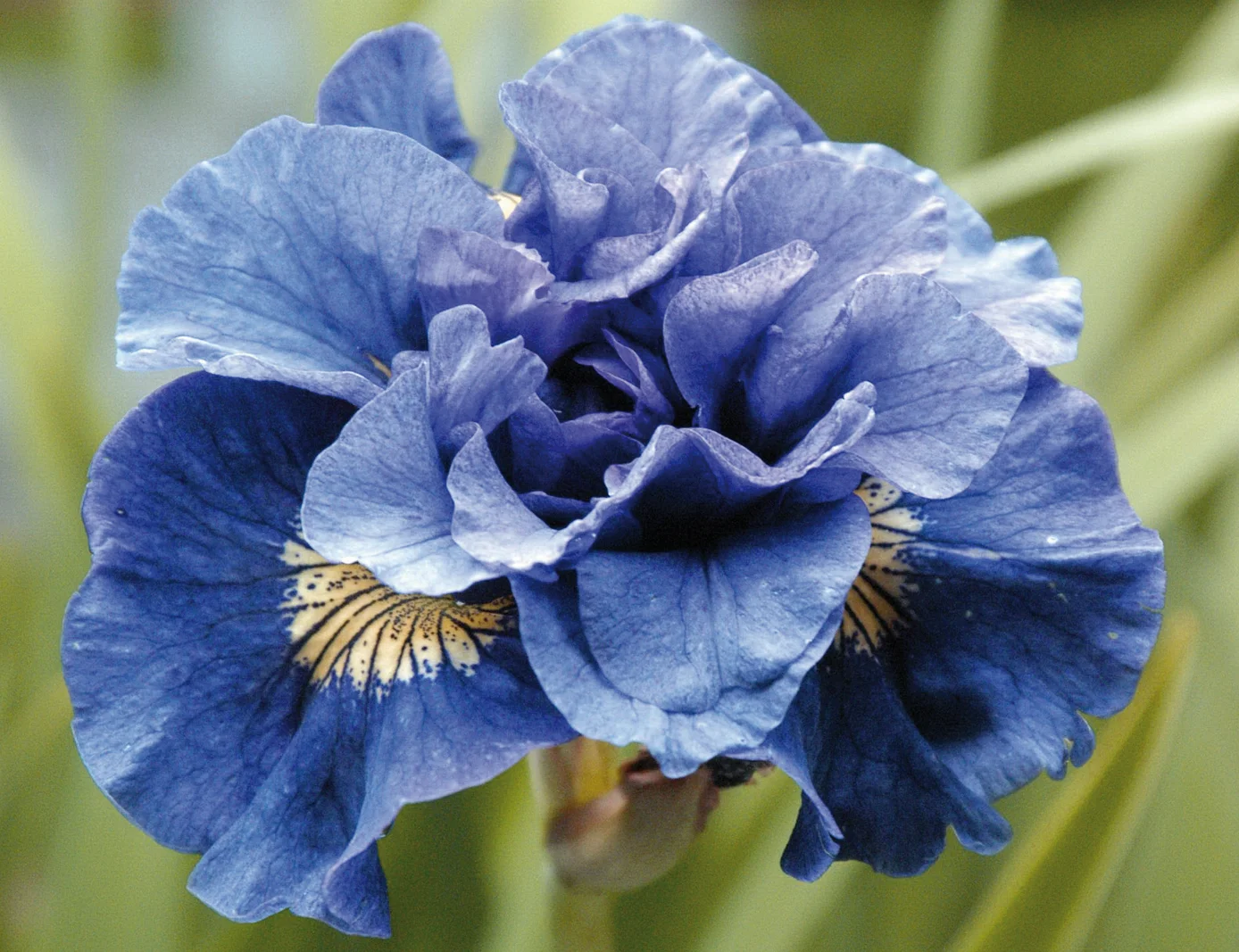 Iris sibirica 'Concord Crush' är en spektakulär och kraftfull sibirisk iris med dubbla, sammetsblå blommor som nästan ger illusionen av pionliknande fyllighet. Kronbladen är lätt vågiga och bildar ett tätt, dramatisk uttryck – perfekt som solitär eller i färgstarka perennrabatter. Sorten blommar i juni och ger ett stadigt intryck tack vare det styva, upprätta bladverket. Trivs i sol till halvskugga och i fuktighetshållande, mullrik jord. Utmärkt även vid dammkanter eller i naturlika planteringar. En mycket härdig och lättskött sort som kombinerar elegans med styrka.