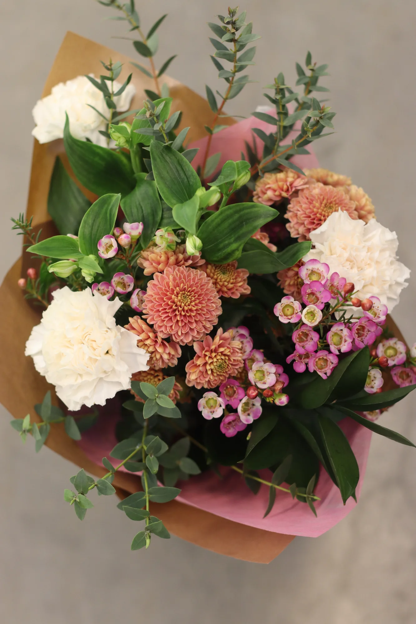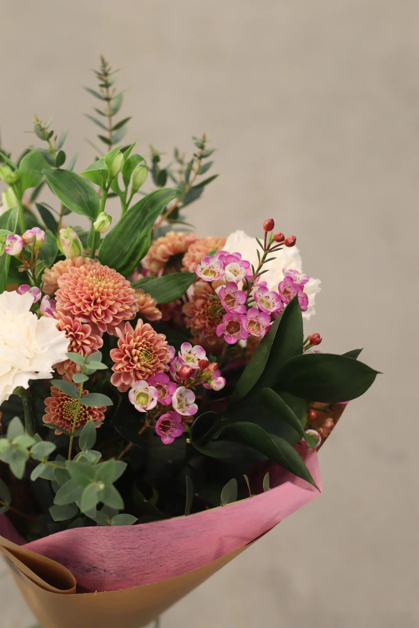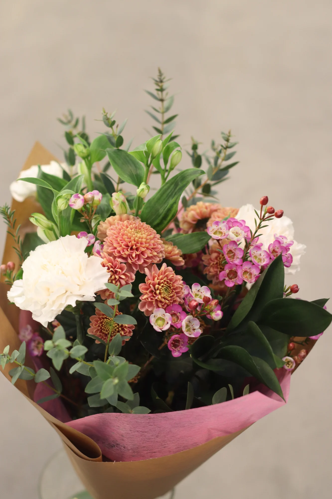 En handbunden, säsongsbetonad bukett som varierar varje vecka med fräscha blommor av högsta kvalitet. Perfekt som gåva eller för att lysa upp vardagen hemma. Varje bukett är unik och anpassad efter säsongens bästa blommor.